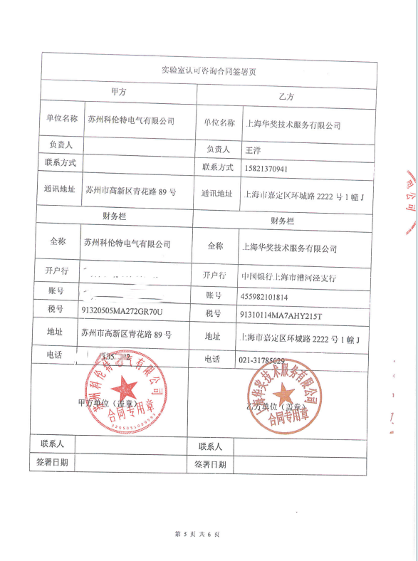 实验室认可咨询服务–苏州科伦特电气有限公司